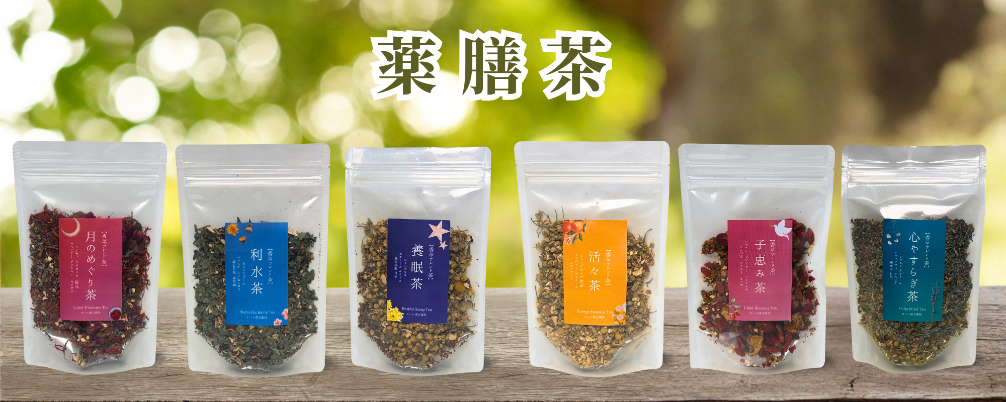 漢方薬剤師が体質や悩みに合わせて数種類の薬膳やハーブで調製した香草ブレンド茶。自分で調節できるリーフタイプと手軽なティーバッグタイプをご用意しています。毎日のセルフケアとして飲み続けやすい香草茶をオンラインで購入できます。